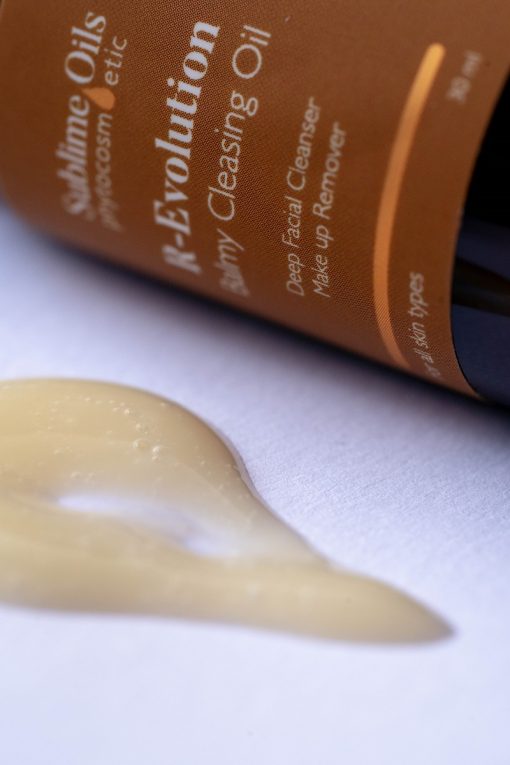 R-Evolution enthält 6 pflanzliche Öle mit einem Lipidprofil, das dem der Haut ähnlich ist, reich an essentiellen Fettsäuren, Omega 6 (Linolsäure) und Omega 3 (Linolensäure), Ceramiden, Stearinsäure mit großer Reinigungswirkung, die als Tensid fungiert und Schmutz anzieht, und Palmitinsäure, die uns hilft, Schmutz in der wässrigen Phase zu emulgieren und zu entfernen.